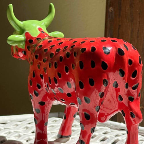 With its vibrant strawberry design, this figurine adds a playful touch to any collection, reflecting the charm and creativity of the Cow Parade series.